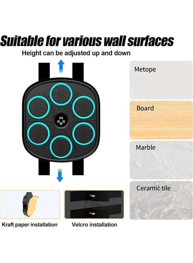 آلة تدريب ملاكمة مثبتة على الحائط ، آلة ملاكمة للموسيقى الذكية مع قفازات الملاكمة و 6 أضواء وبلوتوث مستشعر المستشعر الهدف