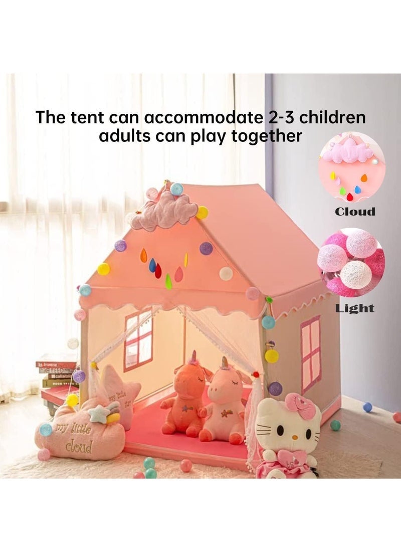 - خيمة الأطفال مصنوعة من قماش قطني عالي الجودة يدوم طويلاً، مقاوم للتشقق، غير سام، عديم الرائحة وآمن تمامًا للأطفال. تصميمها الوردي الجذاب مخصص للفتيات الصغيرات لتحقيق أحلامهن في عالم الأميرات.
