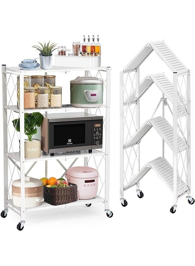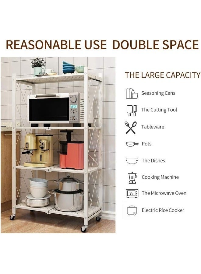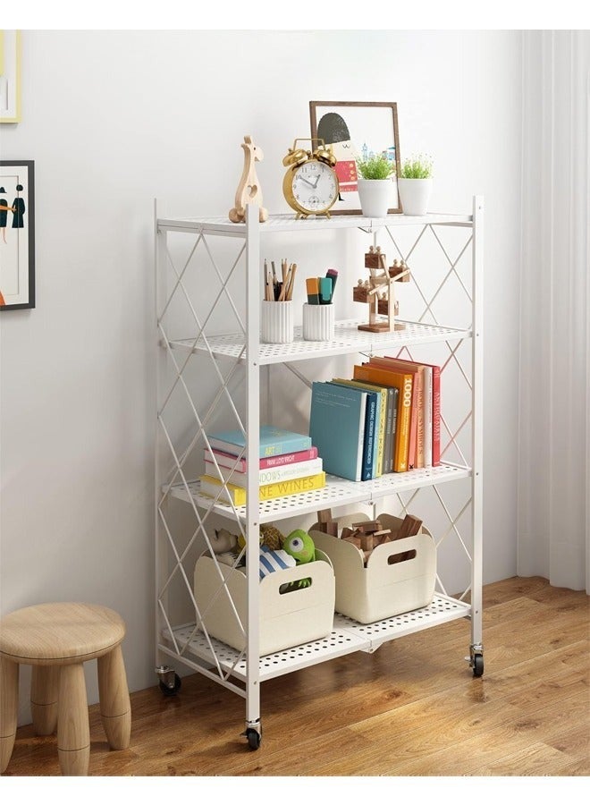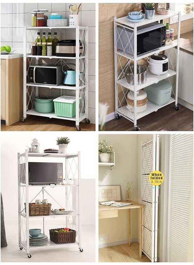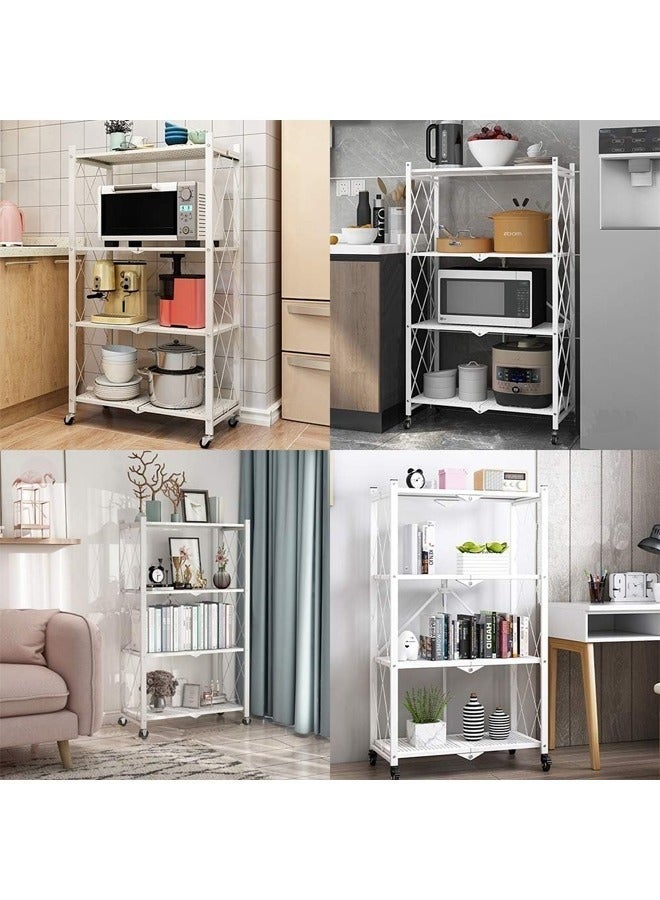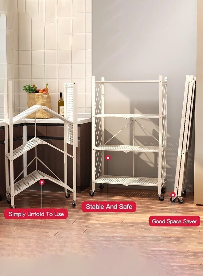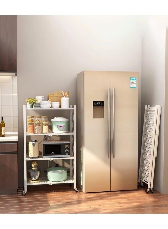 • منظم المطبخ مع 4 رفوف قابلة للطي وإطار حديدي وعجلات: الكمال لمساحتك المطبخية