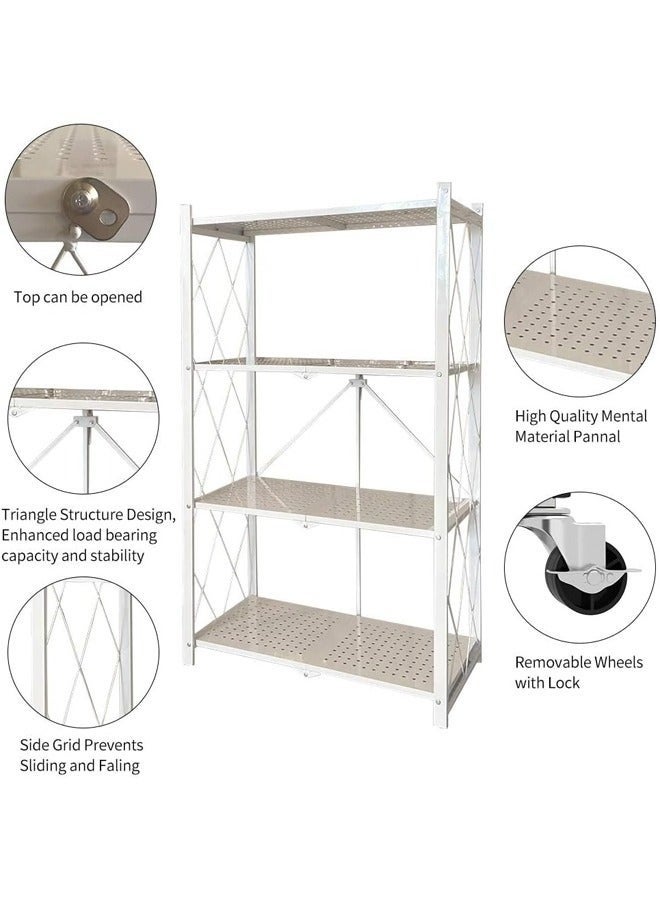 حامل تخزين للمطبخ و وحدة ارفف تخزين معدنية قوية على عربة متحركة للكراج والمطبخ والقبو والمخزن ، رفوف تخزين و منظمات مطبخ قابلة للطي بأربع طبقات سميكة مع عجلات ،ادراج تخزين بسعة كبيرة ، لون أبيض