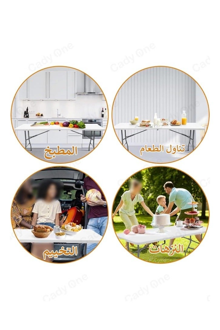 طاولة التخييم المحمولة القابلة للطي -طاولة نزهات بيضاء مقاومه للماء 180×70×74 سم مع أقفال فولاذية للسفر في الهواء الطلق والمناسبات الداخلية