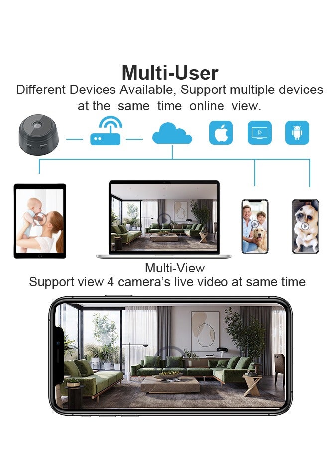 كاميرا واي فاي صغيرة كاميرا صغيرة مراقبة عن بعد أمن المنزل 1080 بكاميرا الأشعة تحت الحمراء كاميرا لاسلكية كاميرا تتبع ذكية مع الرؤية الليلية وكشف الحركة للاستخدام الداخلي والخارجي