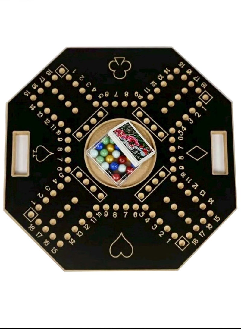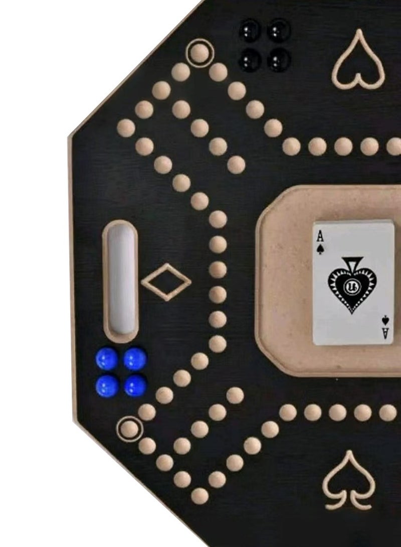 لعبة جاكارو خشبية سوداء مع حقيبة حمل قوية للتخطيط الاستراتيجي، لعبة جاكارو خشبية لأربعة لاعبين مع كرات زجاجية وبطاقات، لعبة جاكارو خشبية 43×43 سم
