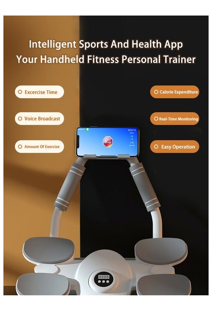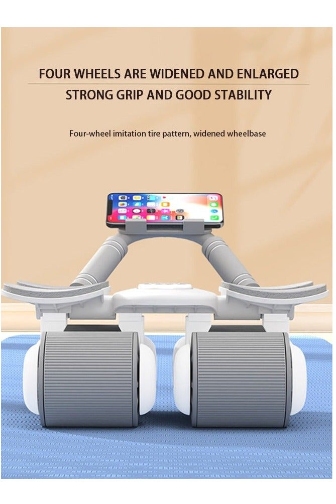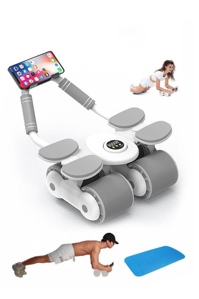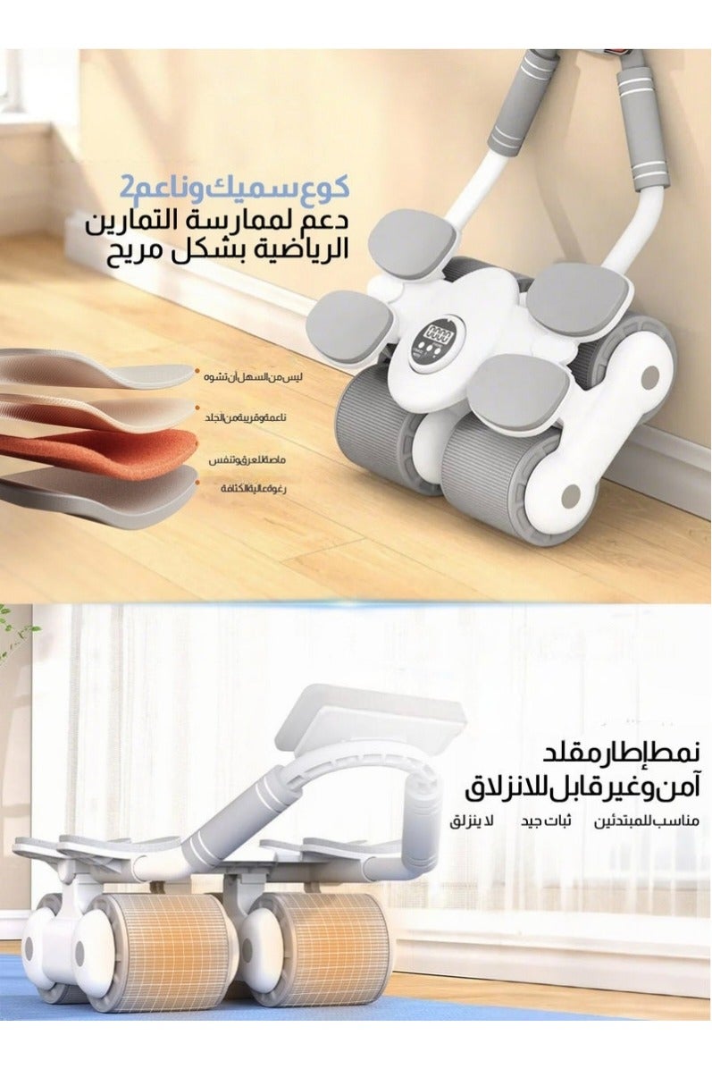 عجلة بطن بآلية ارتداد تلقائي مع مساند للمرفق ومؤقت، للجنسين، أبيض
