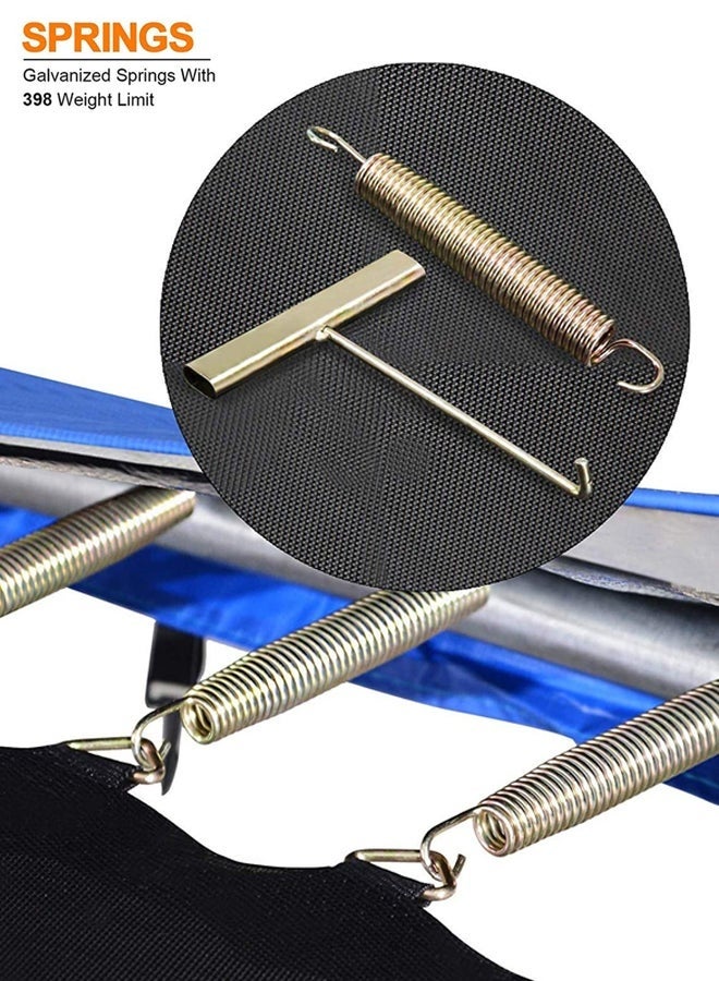 يتيح السياج الشبكي الآمن والقضبان المغطاة بطبقة إسفنجية حماية إضافية للأطفال أثناء اللعب، كما توفر النوابض المقاومة للصدأ مرونة عالية في القفز وأمانًا يدوم طويلًا. بالإضافة إلى ذلك، تأتي وسادة الإطار العريضة المقاومة للأشعة فوق البنفسجية والمليئة بالإسفنج لتعزيز الراحة والحماية.